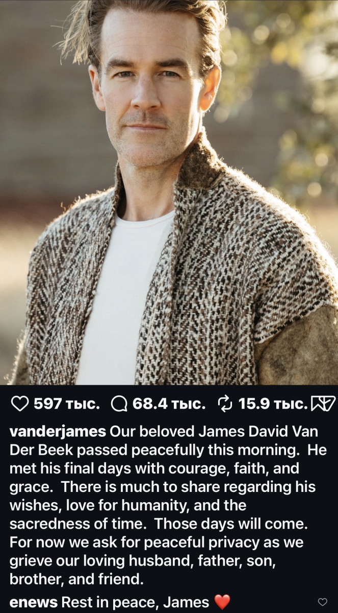 Умер Джеймс Ван Дер Бик, звезда сериала «Бухта Доусона». Ему было 48 лет