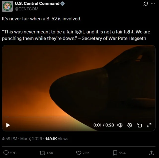 - U.S. Central Command (@CENTCOM) March 7, 2026
