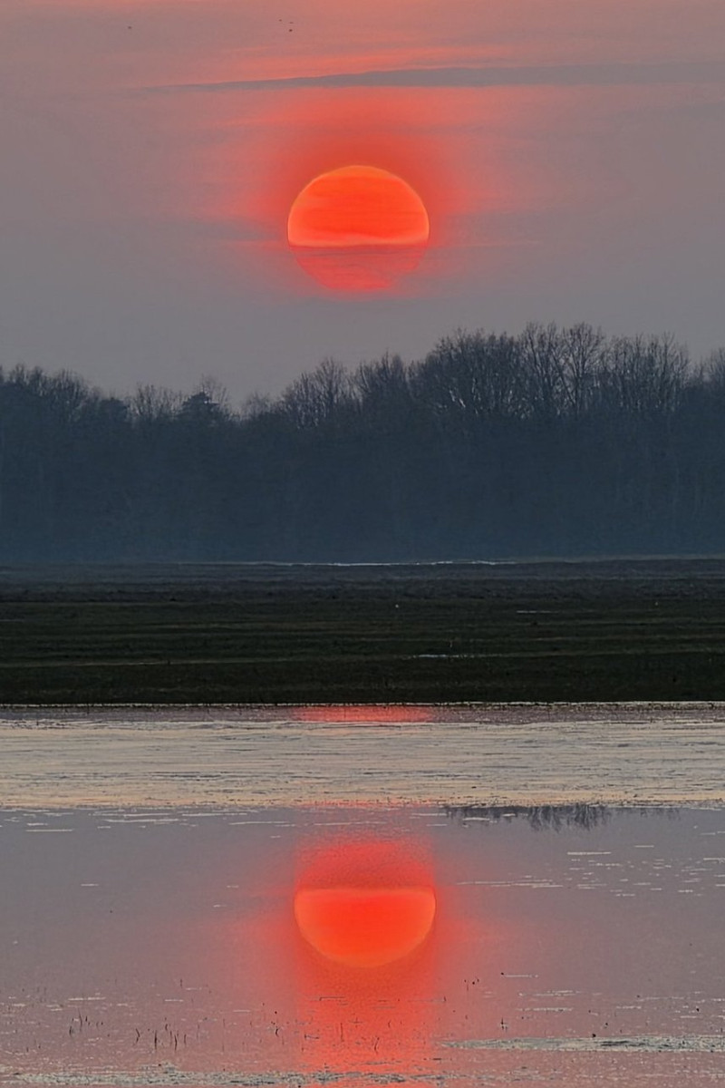 Фотографиями явления поделились читатели портала Delfi. На снимках видно матовое небо и красное солнце. Один из таких закатов был запечатлён неподалёку от города Юрбаркас.