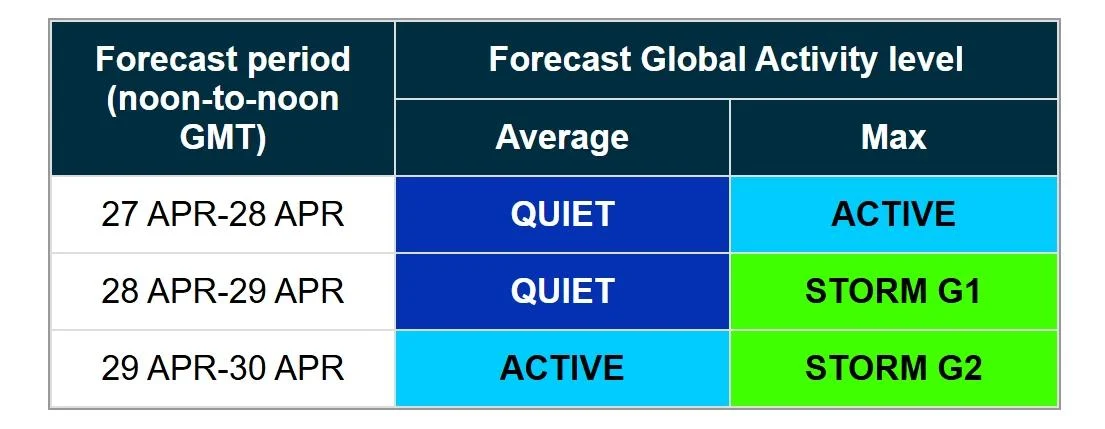 Согласно прогнозу, магнитная буря начнется в понедельник с уровня G1 (слабая), однако уже в течение вторника возмущения усилятся до класса G2.