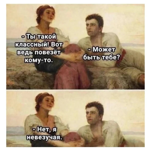 5 октября 2025, 21:05 Настя ИзмайловаЮмор за день и побольше ✕ Размер шрифта: 17px ✕ Ссылка скопирована! - Ноги-то у тебя красивые. Жаль - заканчиваются быстро юмор