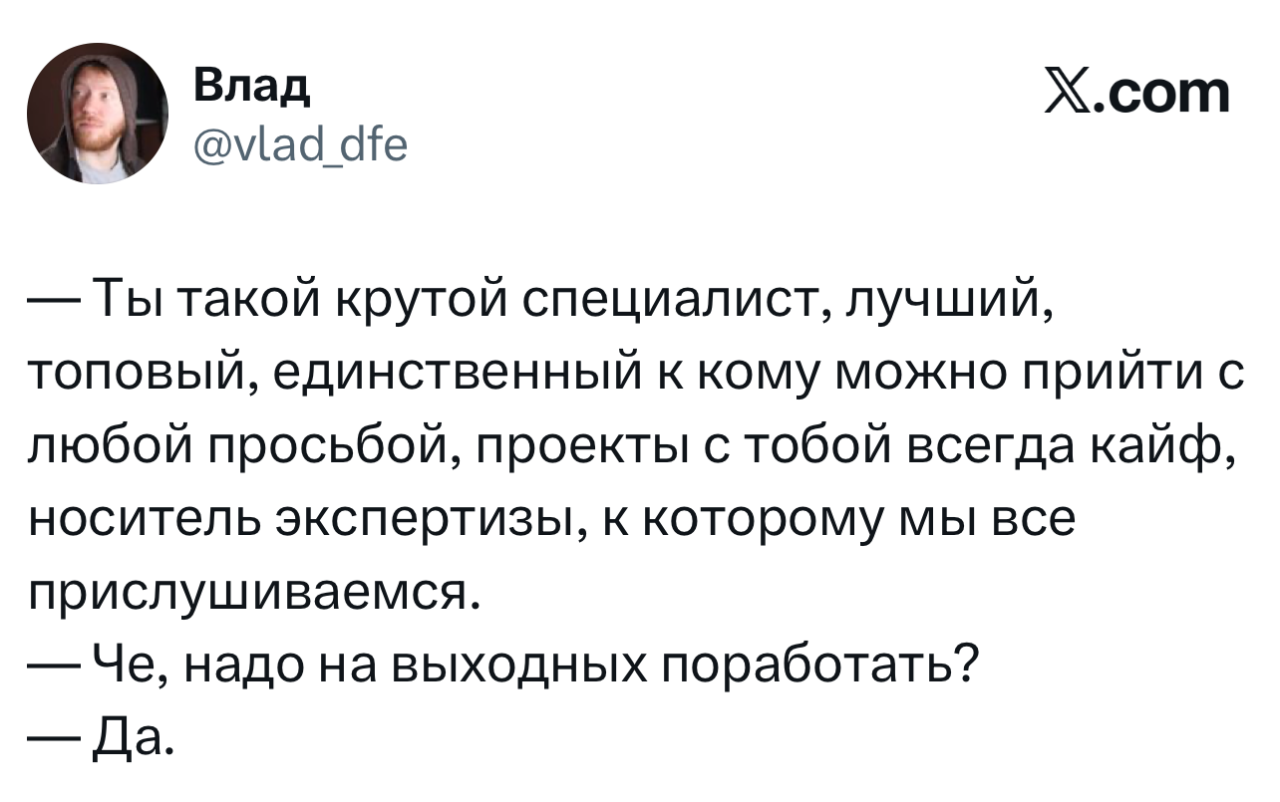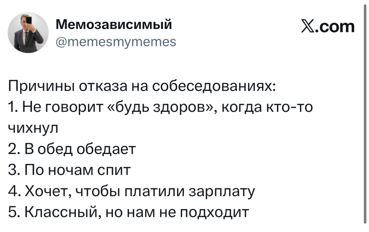 10 октября 2025, 19:05 Настя ИзмайловаЮмор за день и лаваш ✕ Размер шрифта: 17px ✕ Ссылка скопирована! - встречаемся завтра в 7 у входа в парк. -как я тебя узнаю? -я буду в белой куртке, красных кроссовках и не приду. юмор