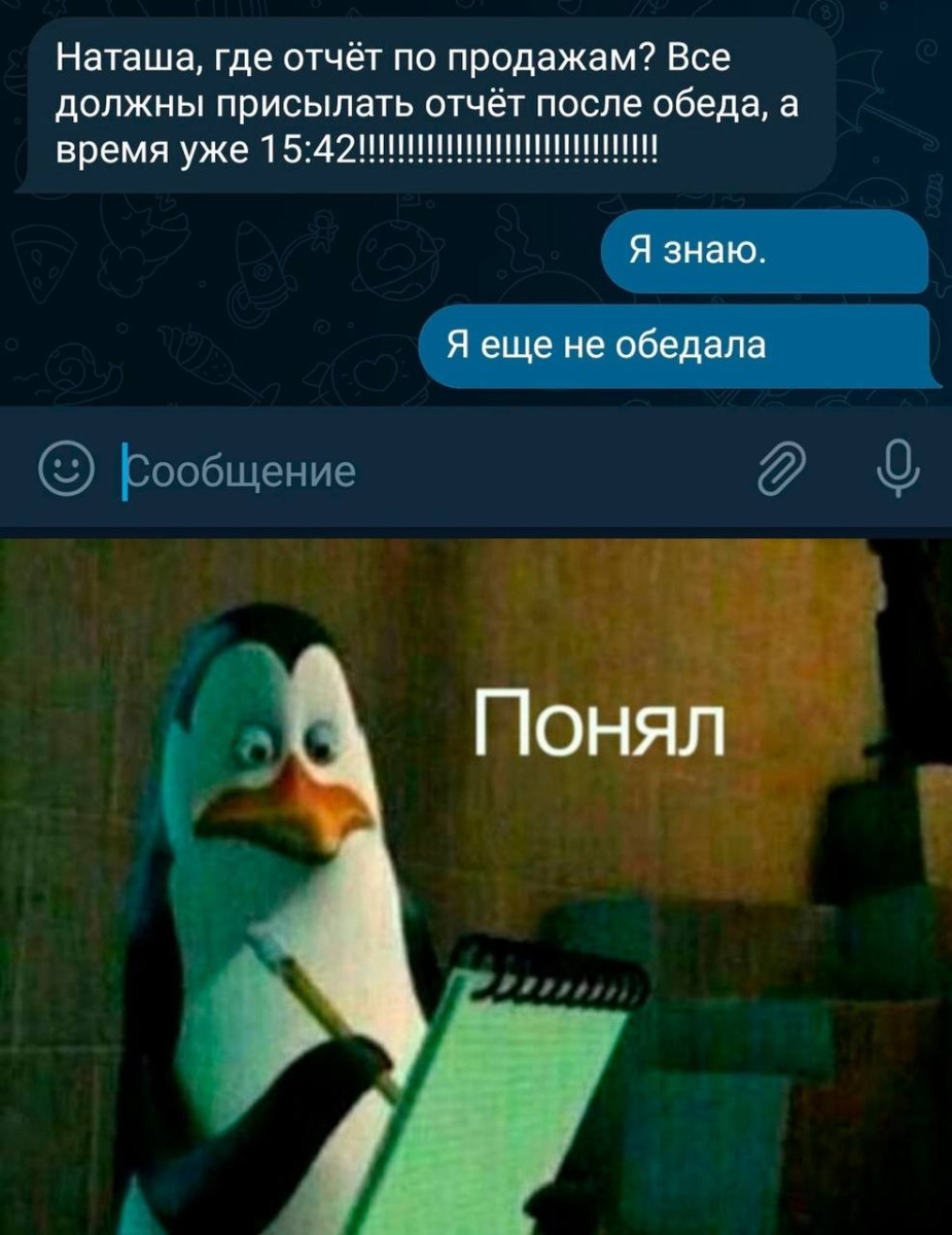 11 октября 2025, 19:05 Настя ИзмайловаЮмор за день и что лучше ✕ Размер шрифта: 17px ✕ Ссылка скопирована! Стоматолог: вы неправильно чистите зубы. Психолог: вы неправильно живёте. Диетолог: вы неправильно питаетесь. Продавец алко: отличный выбор! юмор