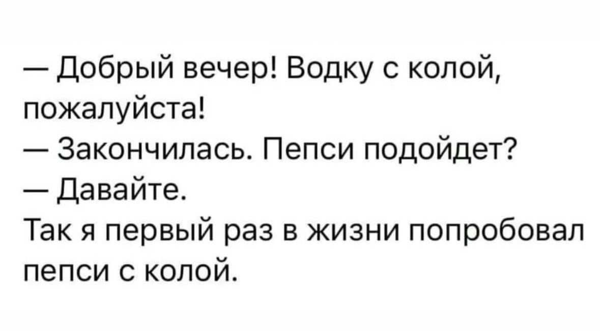 20 октября 2025, 21:05 Настя ИзмайловаЮмор за день и хороший аппетит ✕ Размер шрифта: 17px ✕ Ссылка скопирована! У нас водитель должен уметь две вещи: уворачиваться от ям, и уворачиваться от тех, кто уворачивается от ям юмор