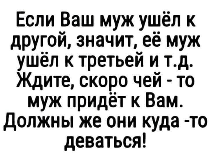 21 октября 2025, 19:05 Настя ИзмайловаЮмор за день, жена и правительство ✕ Размер шрифта: 17px ✕ Ссылка скопирована! СПЛЕТНИЦА ВАРВАРА НЕ ТОЛЬКОВИДЕЛА КРАЕМ ГЛАЗА, СЛЫШАЛА КРАЕМ УХА,НО И ДУМАЛА КРАЕМ МОЗГА юмор