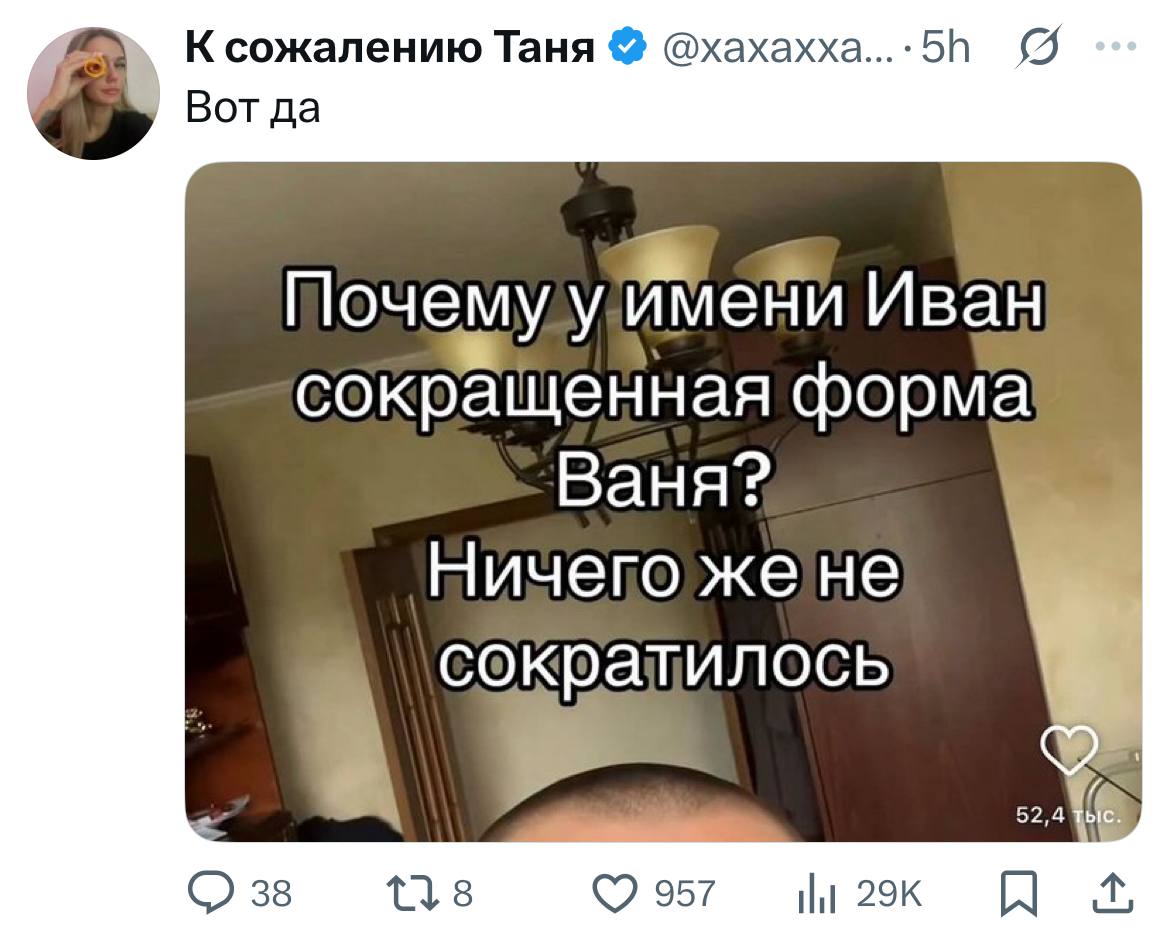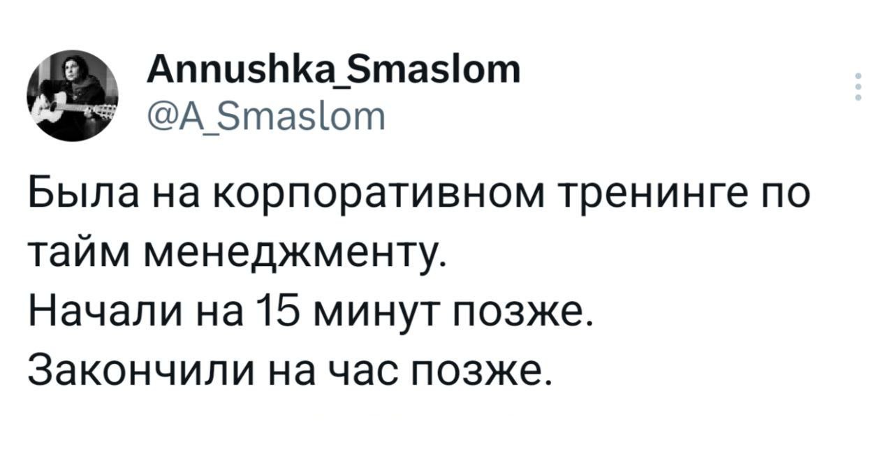 1 ноября 2025, 21:05 Настя ИзмайловаЮмор за день и 5 кг ✕ Размер шрифта: 17px ✕ Ссылка скопирована! Я реалист.Мне без разницы полон стакан или пуст, мне важно, что в стакане. юмор