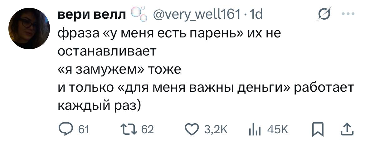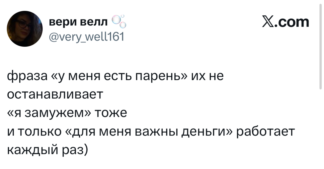 6 ноября 2025, 19:05 Настя ИзмайловаЮмор за день и такие разные мужчины ✕ Размер шрифта: 17px ✕ Ссылка скопирована! Читайте такжеОна никогда не упрекала мужчину, считала это не по-женски. Она принимала его таким, какой он есть, и подыскивала другого.Юмор за день и как другЮмор за день и нижняя губаОна никогда не упрекала мужчину, считала это не по-женски. Она принимала его таким, какой он есть, и подыскивала другого. юмор