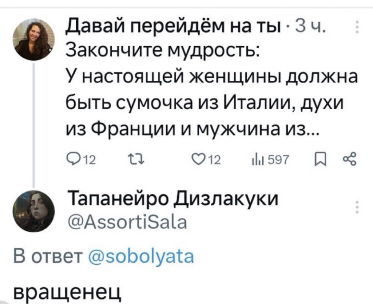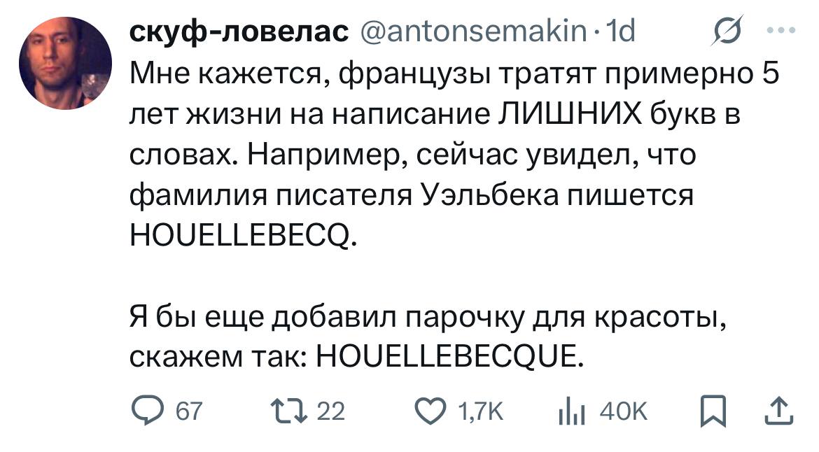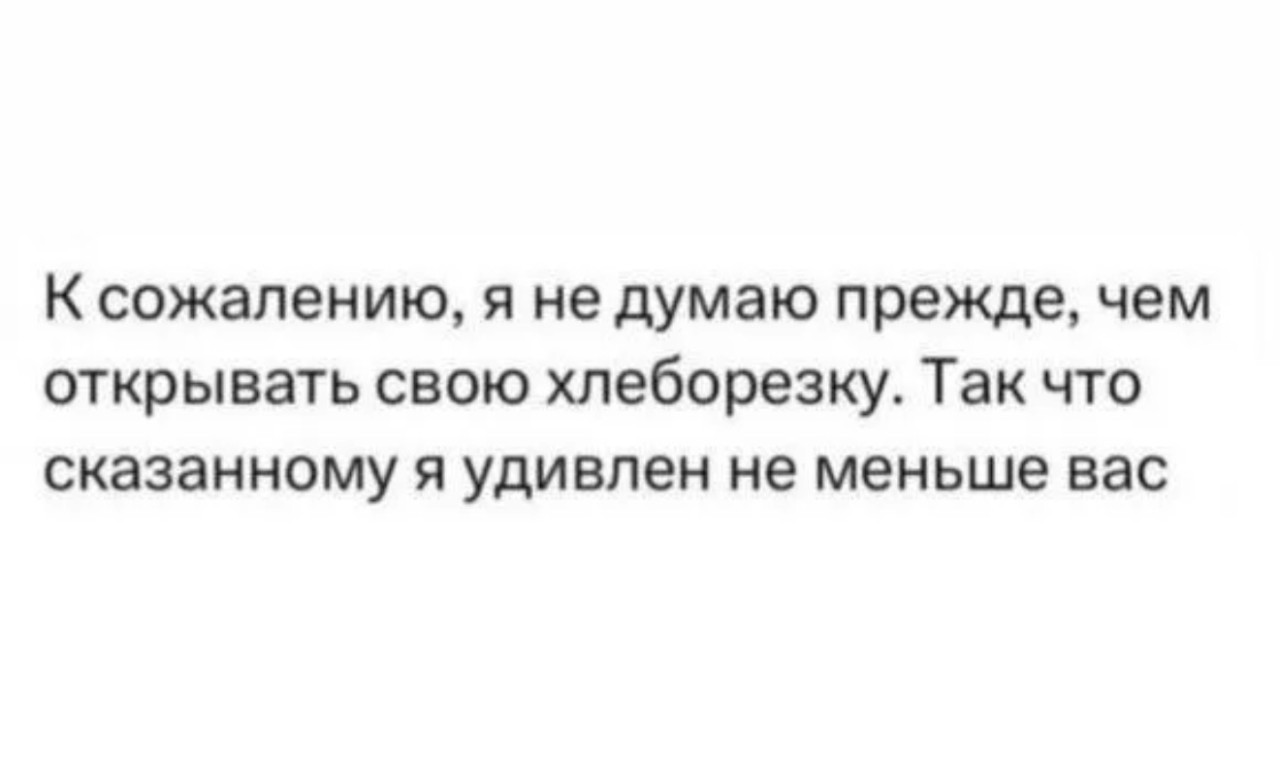 14 ноября 2025, 21:05 Настя ИзмайловаЮмор за день и домашняя ✕ Размер шрифта: 17px ✕ Ссылка скопирована! Если верблюд способен не пить две недели, то почему он не бросит совсем? юмор