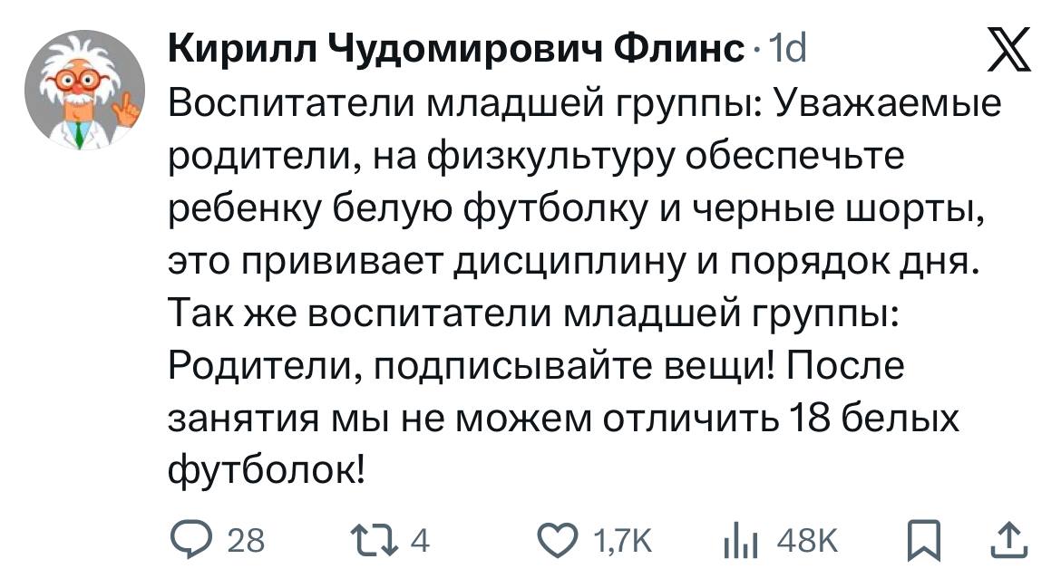 15 ноября 2025, 19:05 Настя ИзмайловаЮмор за день и доминантный партнер ✕ Размер шрифта: 17px ✕ Ссылка скопирована! Решить сложную задачу нашим учёным помогают спирт и изолента, а британским - скотч и скотч. юмор