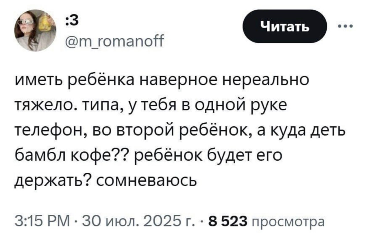 16 ноября 2025, 21:05 Настя ИзмайловаЮмор за день и лабубинг ✕ Размер шрифта: 17px ✕ Ссылка скопирована! юмор