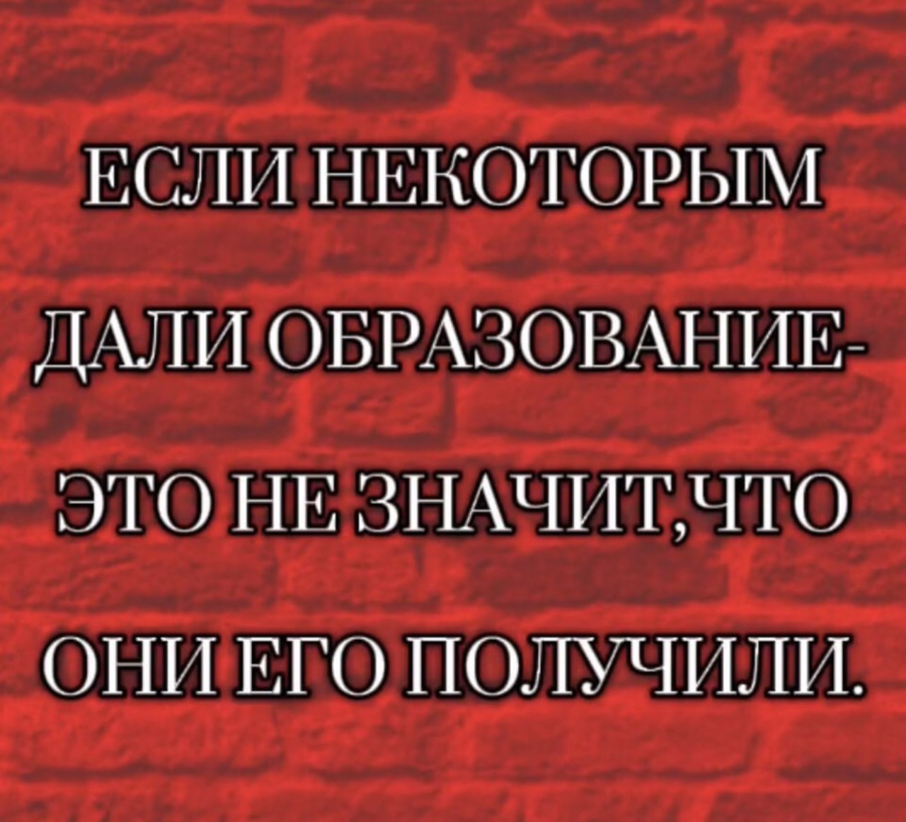 18 ноября 2025, 19:05 Настя ИзмайловаЮмор за день и интрига ✕ Размер шрифта: 17px ✕ Ссылка скопирована! ЕСЛИ ВАМДАЛИ ХОРОШЕЕ ОБРАЗОВАНИЕ -ЭТО НЕ ЗНАЧИТ, ЧТОВЫ ЕГО ПОЛУЧИЛИ. юмор