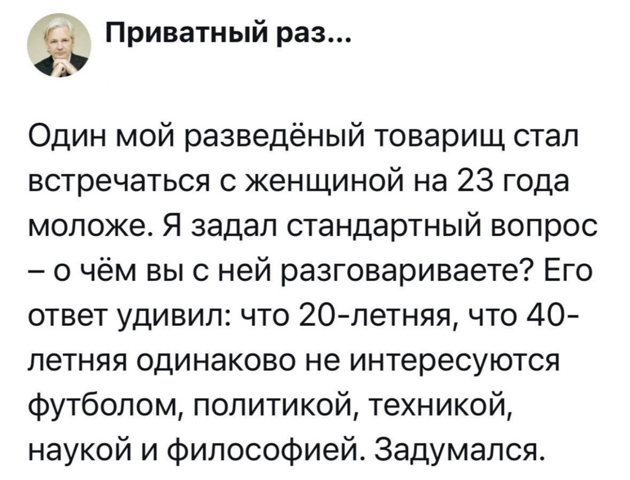 21 ноября 2025, 21:05 Настя ИзмайловаЮмор за день и когда вырос как личность ✕ Размер шрифта: 17px ✕ Ссылка скопирована! 30-летняя знакомая сказала, что хочет ребёнка и начала встречаться с 18-летним. юмор
