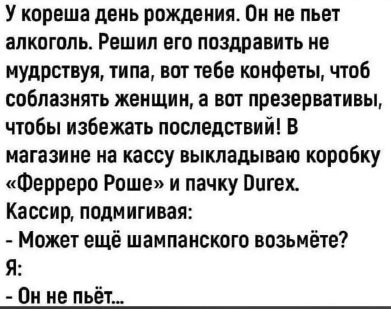 23 ноября 2025, 19:05 Настя ИзмайловаЮмор за день и про книги ✕ Размер шрифта: 17px ✕ Ссылка скопирована! Еда, оплаченная не вами,не имеет калорий юмор