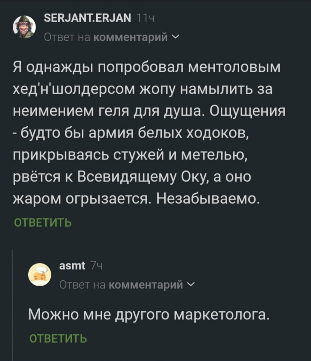 28 ноября 2025, 14:06 Алексей ИвановЮмор для тех, кто уже повзрослел и понял, что «достижение» - это закрыть все вкладки в браузере. ✕ Размер шрифта: 17px ✕ Ссылка скопирована! Очередная порция юмора для тех, кто понял жизнь и в цирке не смеется, потому что он в нем живёт. Читайте такжеЮмор на утро и проступающее будущееЮмор за день и примерно половинаЮмор за день и харакири мемыюмор