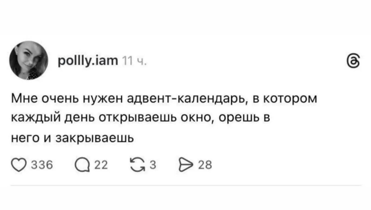 7 декабря 2025, 20:35 Настя ИзмайловаЮмор за день и что такое любовь ✕ Размер шрифта: 17px ✕ Ссылка скопирована! 90% женщин не обращают внимания на мужчин в розовой футболке. В свою очередь, 90% мужчин в розовой футболке не обращают внимания на женщин. Читайте такжеЮмор за день и когда пьяненькийЮмор за день и олениЮмор за день и если ты вкусный юмор