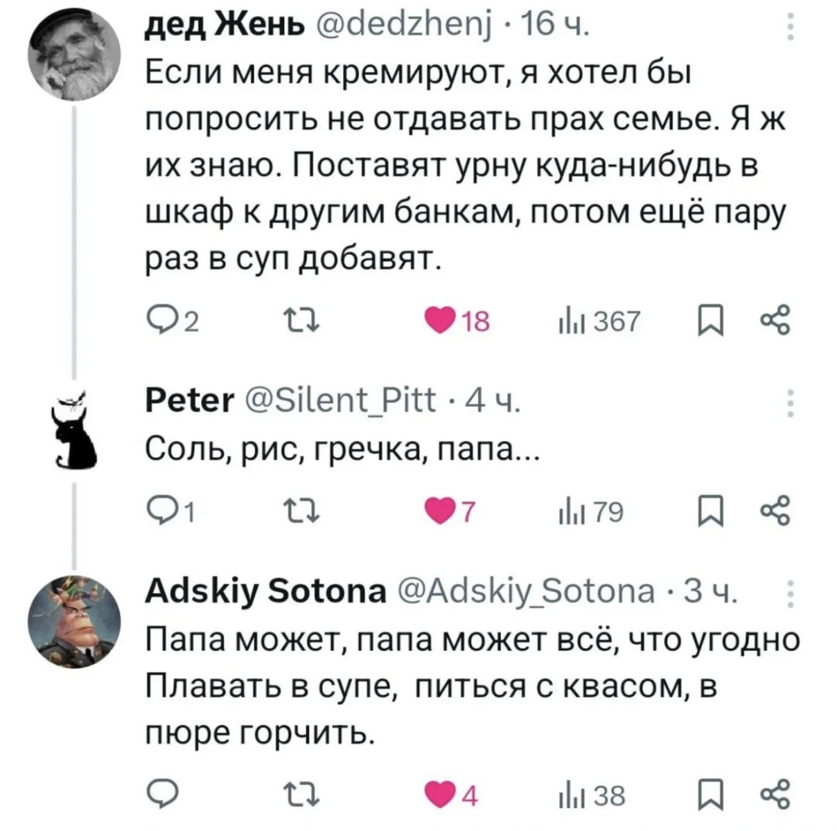 Люди говорят «Я тебя люблю» разными способами: «Пристегни ремень», «Надень шапку», «Пойди поспи», «Я помою посуду», «Доедешь - позвони», «Возьми мою куртку», «Я выехал, жди» и многими-многими другими. Но мы не замечаем этого.