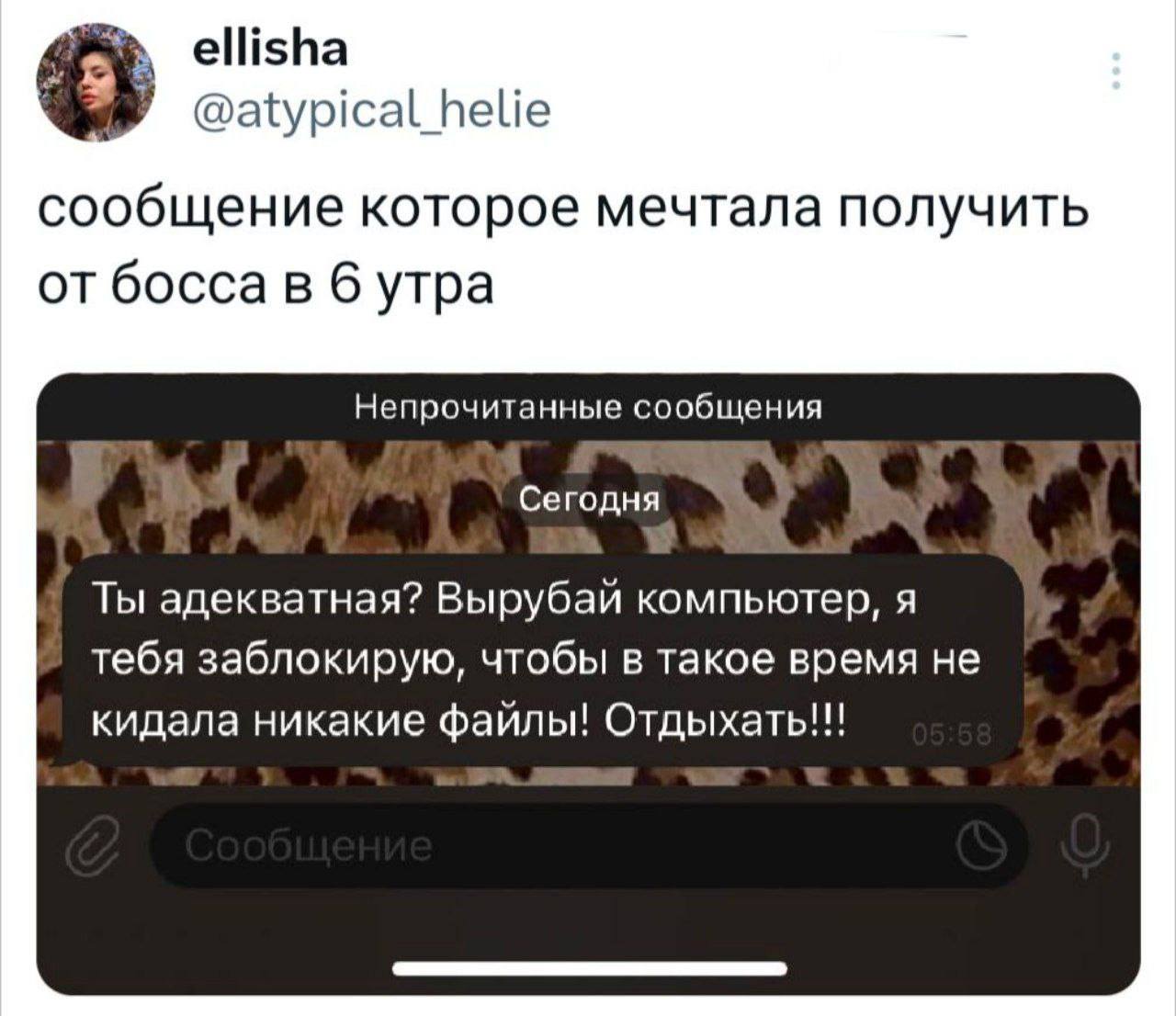 18 декабря 2025, 15:07 Алексей ИвановПост юмора про работу и давайте после новогодних ✕ Размер шрифта: 17px ✕ Ссылка скопирована! Пользователи соцсетей не упускают возможности посмеяться над работой, странными вакансиями, «дружелюбными» коллективами и всем, что с этим связано. Давайте посмотрим, как они с юмором справляются с рабочими буднями.\