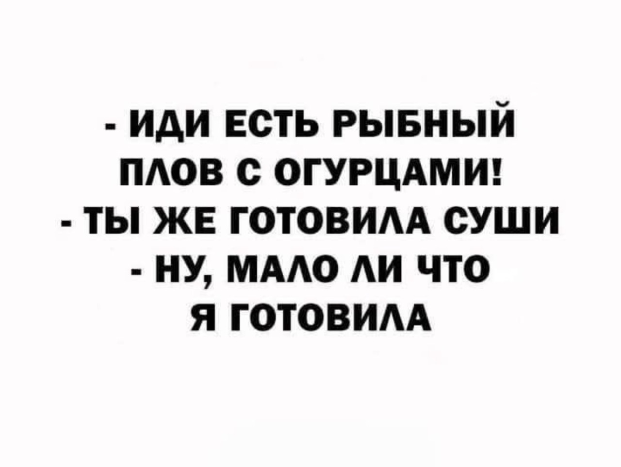 19 декабря 2025, 19:05 Настя ИзмайловаЮмор за день и рыбный плов с огурцами ✕ Размер шрифта: 17px ✕ Ссылка скопирована! Если человек знает, куда он идёт, ему всё равно, куда идут остальные юмор