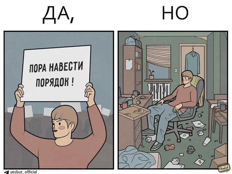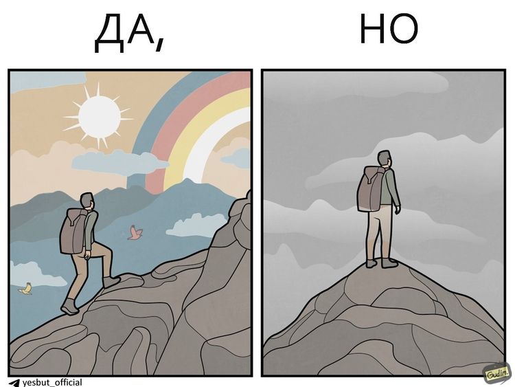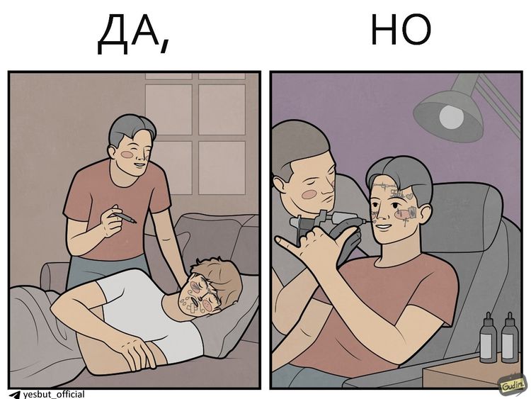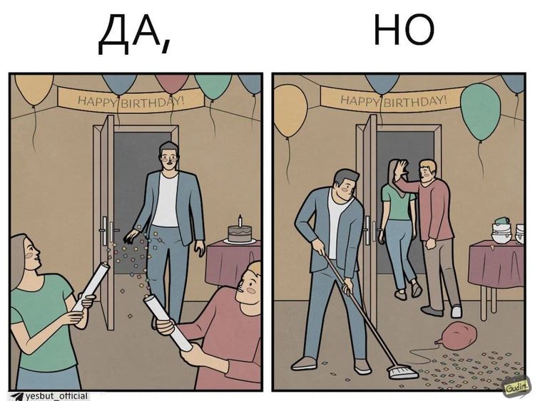 Если вы хоть раз ловили себя на мысли, что мир вокруг напоминает затянувшуюся шутку, значит, творчество Антона Гудима вам точно откликнется. Его серия «Да, но…» - это не просто минималистичные зарисовки. Это краткий курс бытового экзистенциализма, упакованный в понятные каждому образы. Без единого слова художнику удается подсветить те самые моменты, когда мы кажемся себе логичными, оставаясь при этом бесконечно нелепыми.