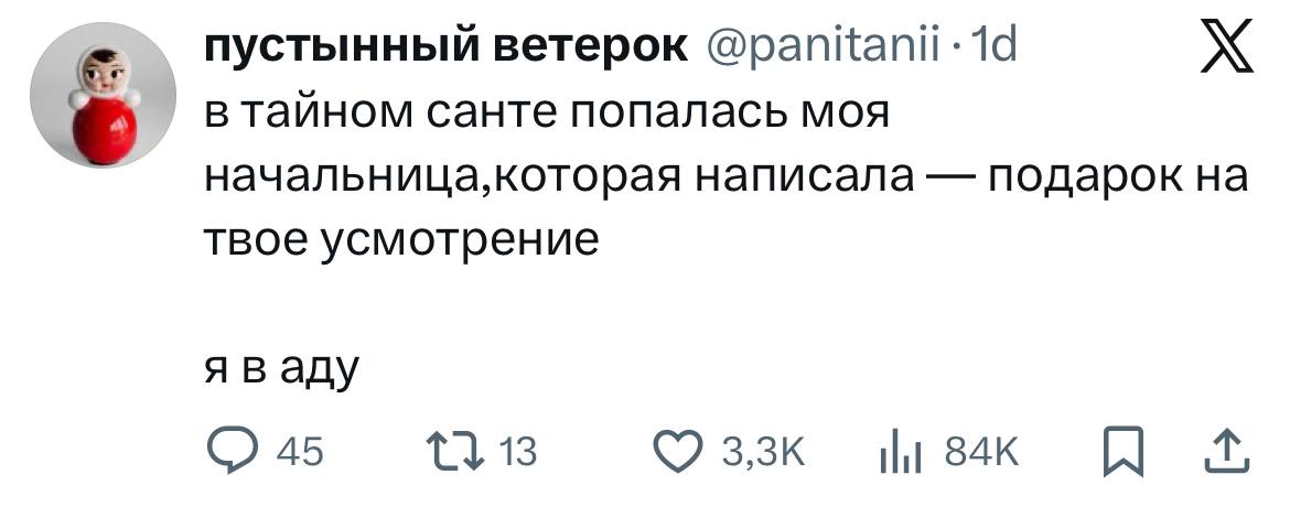 26 декабря 2025, 19:05 Настя ИзмайловаЮмор за день, доктор и больной ✕ Размер шрифта: 17px ✕ Ссылка скопирована! - МНЕ НУЖЕН ТВОЙ СОВЕТ КАК МУЖЧИНЫ.- ДАВАЙ.- ПОНЯЛА, СПАСИБО! юмор