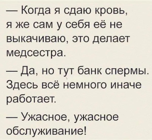 10 января 2026, 21:05 Настя ИзмайловаЮмор за день и следующий раз ✕ Размер шрифта: 17px ✕ Ссылка скопирована! - Скажите, доктор, неужели всё так плохо?!-Ну, почему… Я вот кандидатскую заканчиваю по вашему случаю! юмор