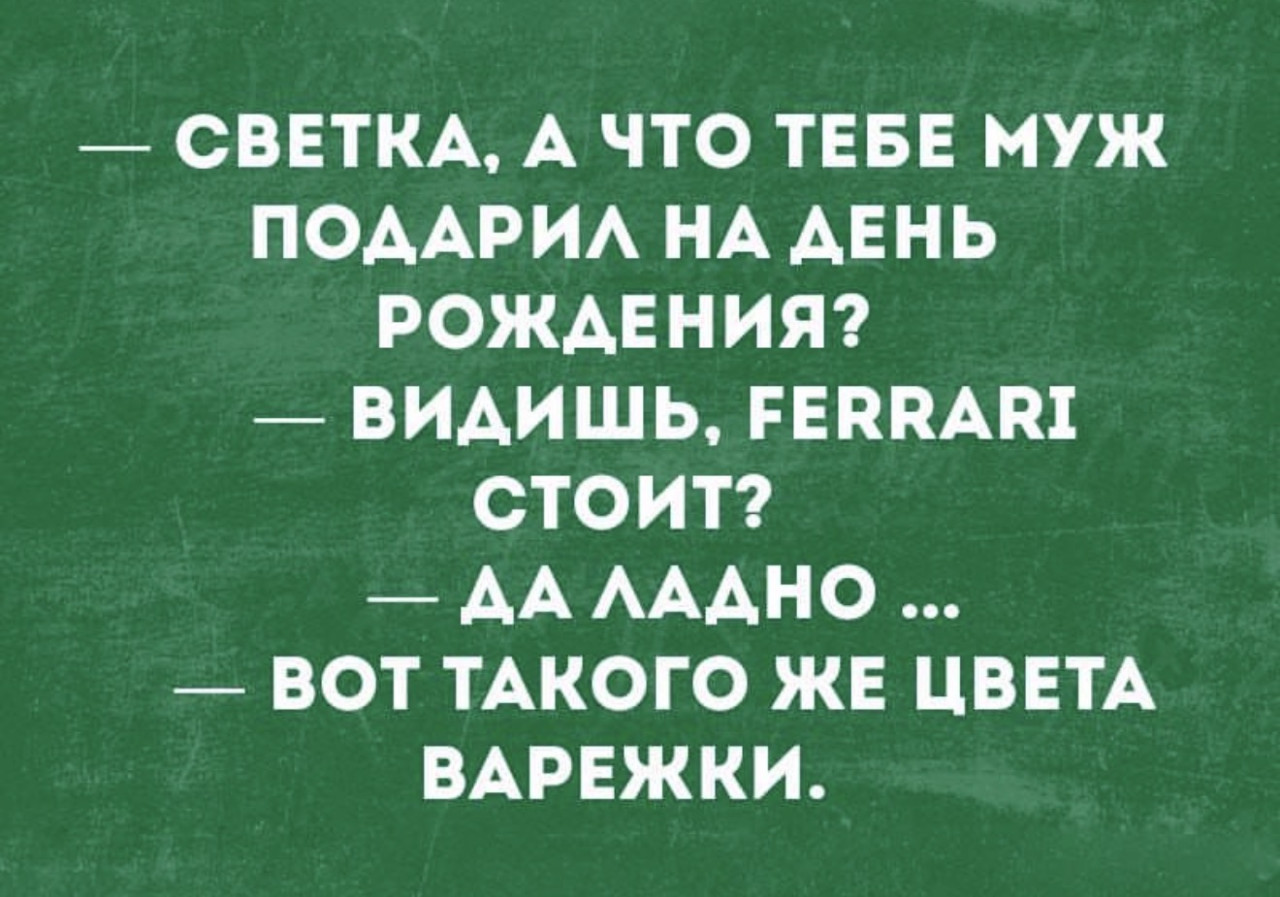 19 января 2026, 19:05 Настя ИзмайловаЮмор на вечер и опасные мужчины ✕ Размер шрифта: 17px ✕ Ссылка скопирована! - Чем вы занимаетесь?- Я испытатель.- А что же вы испытываете?- Материальные трудности. юмор