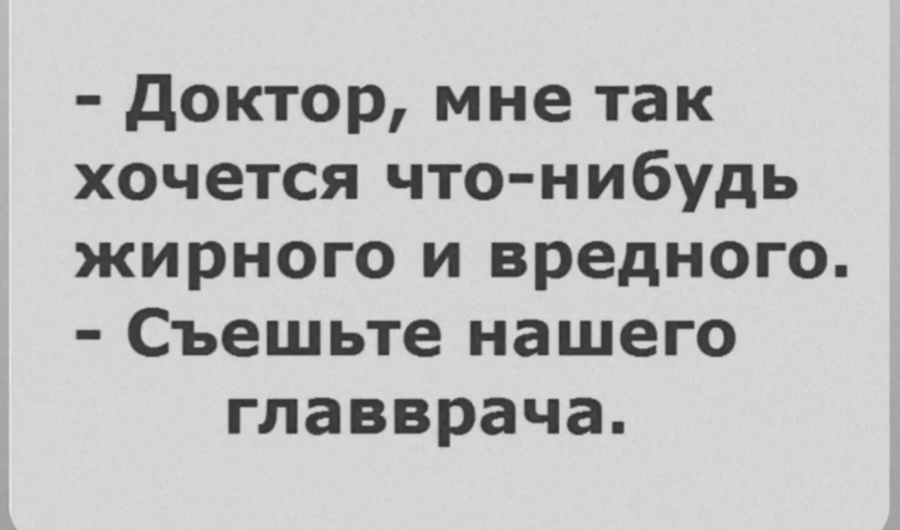 27 января 2026, 19:05 Настя ИзмайловаЮмор на вечер и актуальный вопрос ✕ Размер шрифта: 17px ✕ Ссылка скопирована! С психиатром трудно спорить.Ты ему - мысль,он тебе - диагноз. юмор