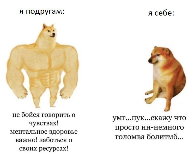 Эти мемы - как секретный язык. Две строчки текста и дурацкая картинка, а внутри всё переворачивается. Потому что кто-то другой тоже проходил через это. И тоже смеялся потом над тем, над чем раньше плакал. И самое смешное - теперь, когда друзья шлют тебе «обычные» мемы про котиков и кофе, ты ловишь себя на мысли: «Мило… но где тут про границы и объектные отношения?» Добро пожаловать в клуб. Здесь свои шутки. И они лечат лучше, чем кажется.