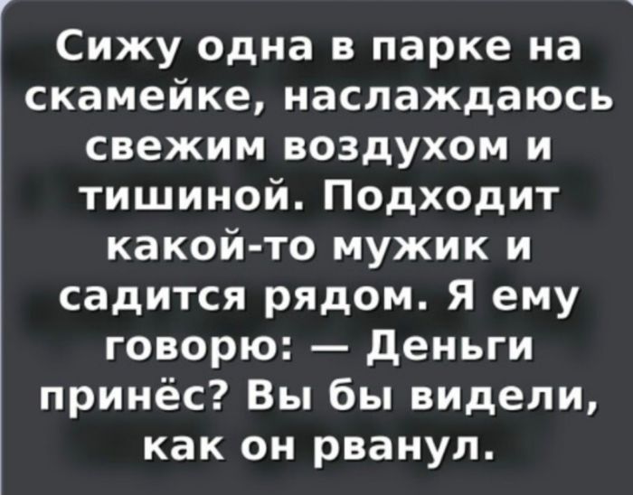31 января 2026, 15:06 Алексей ИвановЮмор для тех, кто повзрослел и понял, что «вдохновляющая цитата» - это то, что ты репостишь, но никогда не применяешь ✕ Размер шрифта: 17px ✕ Ссылка скопирована! Очередная порция юмора для тех, кто понял жизнь и в цирке не смеется, потому что он в нем живёт. мемыюмор