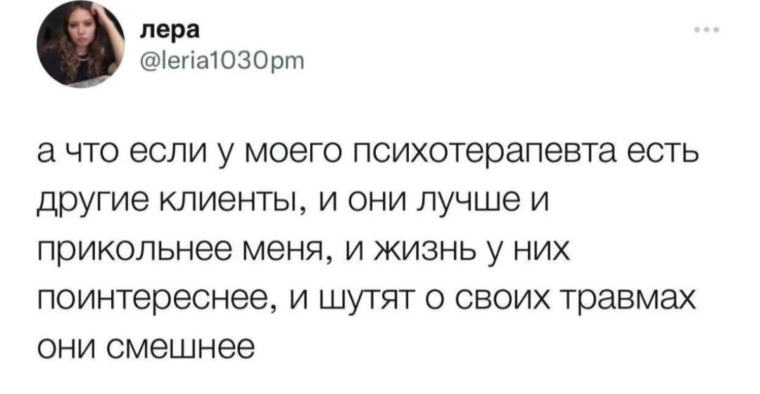 Эти мемы - как секретный язык. Две строчки текста и дурацкая картинка, а внутри всё переворачивается. Потому что кто-то другой тоже проходил через это. И тоже смеялся потом над тем, над чем раньше плакал. И самое смешное - теперь, когда друзья шлют тебе «обычные» мемы про котиков и кофе, ты ловишь себя на мысли: «Мило… но где тут про границы и объектные отношения?» Добро пожаловать в клуб. Здесь свои шутки. И они лечат лучше, чем кажется.
