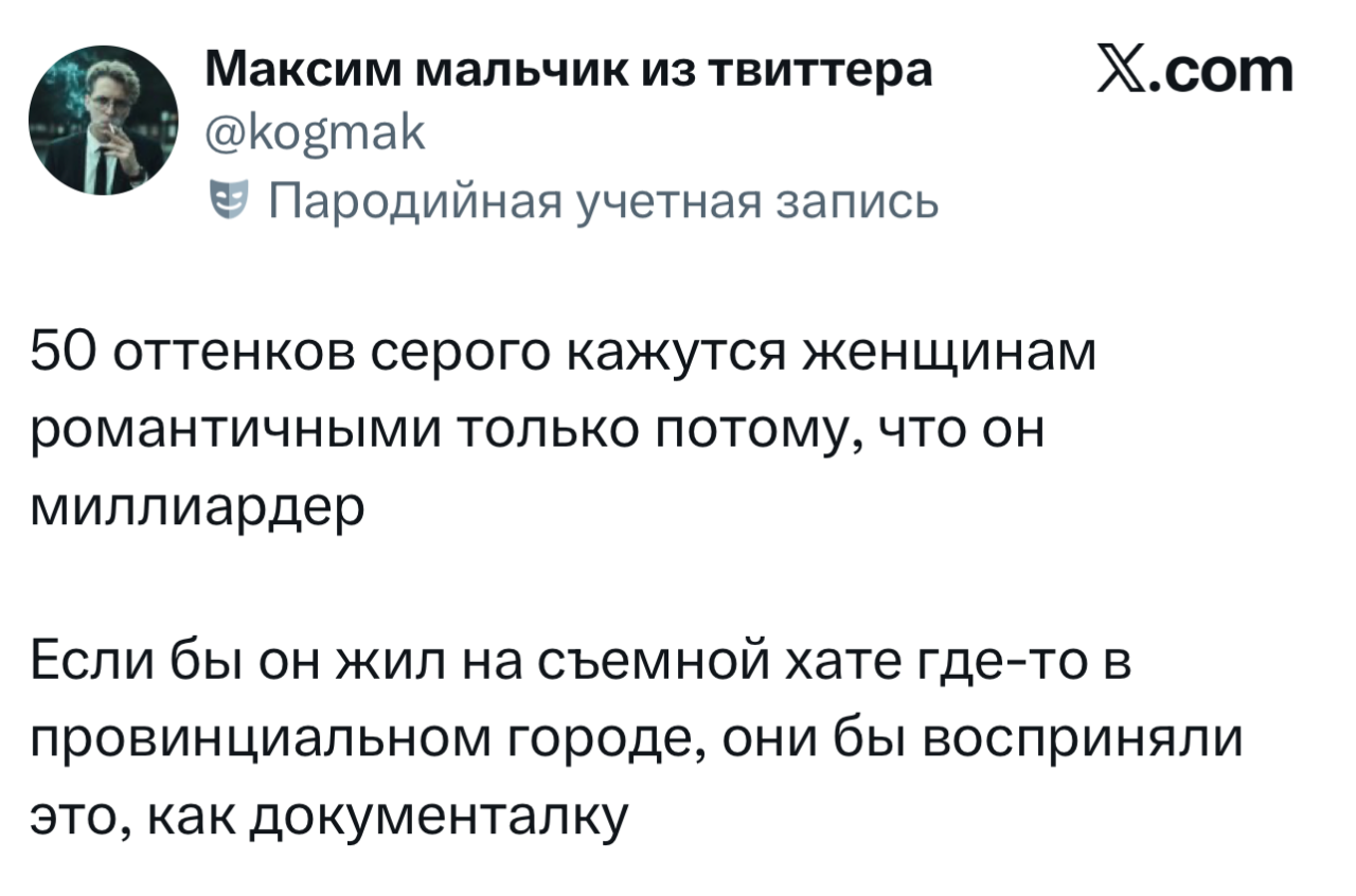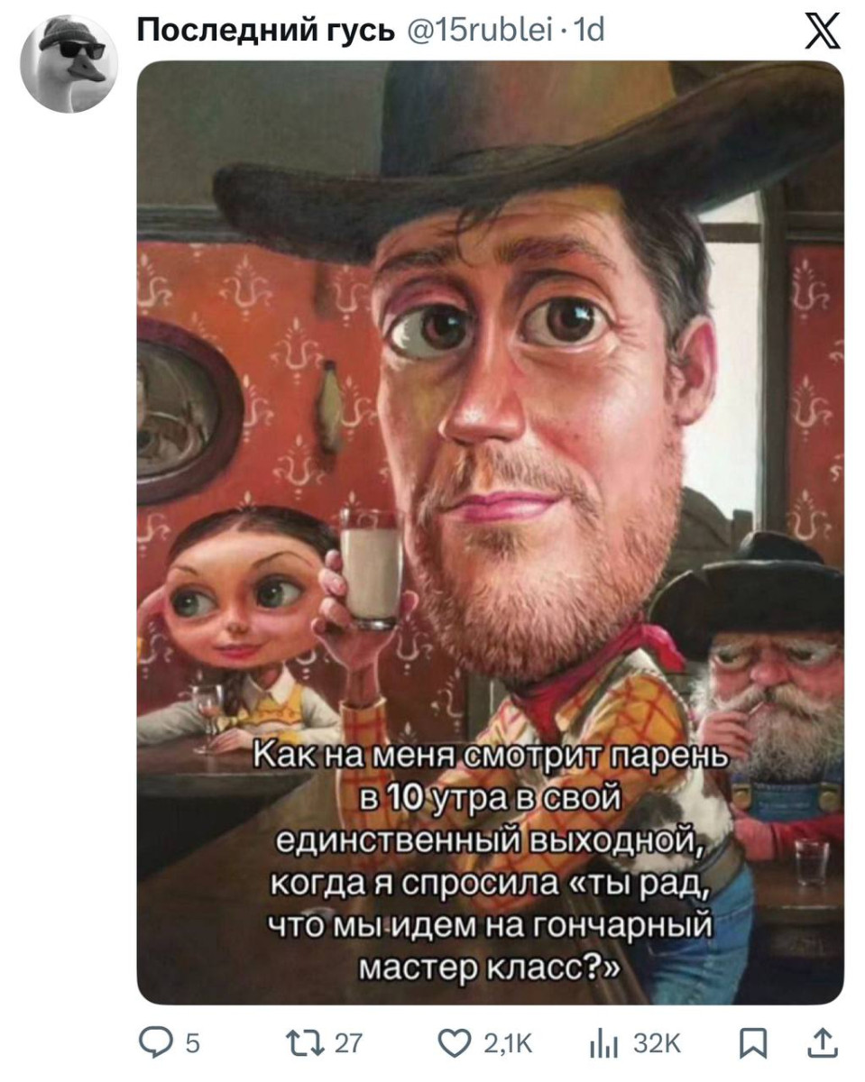 11 февраля 2026, 21:05 Настя ИзмайловаЮмор за день и верные женщины ✕ Размер шрифта: 17px ✕ Ссылка скопирована! Мало кто обращал внимание, но на детских карусельках все лошадки девочки. юмор