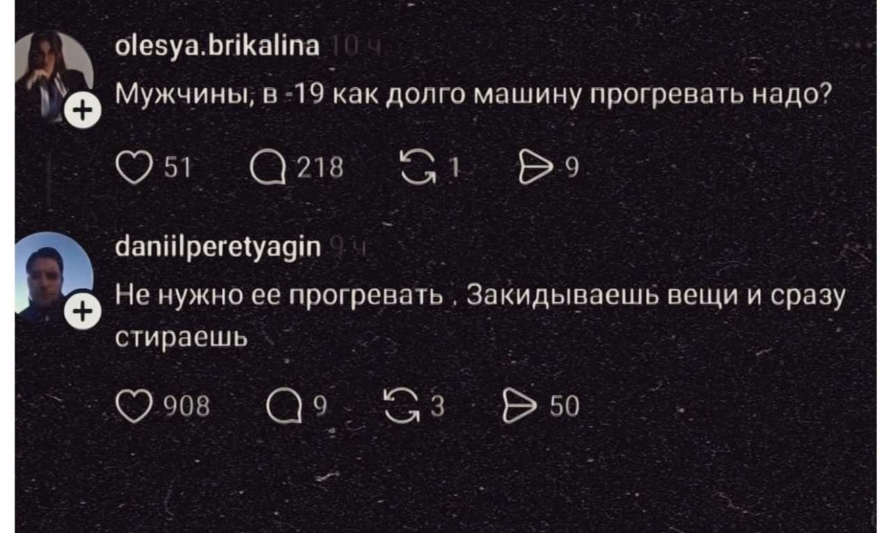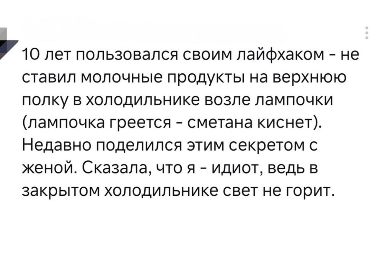12 февраля 2026, 19:05 Настя ИзмайловаЮмор на вечер и нагрузка на позвоночник ✕ Размер шрифта: 17px ✕ Ссылка скопирована! Если Земля и вправду плоская, почему моя жизнь постоянно катится по наклонной? юмор