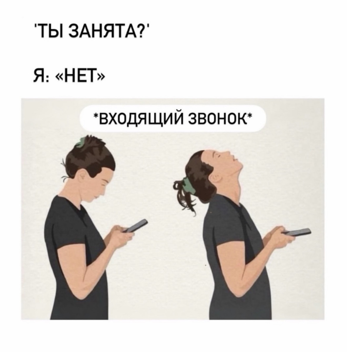 17 февраля 2026, 19:05 Настя ИзмайловаЮмор на вечер и одеялко ✕ Размер шрифта: 17px ✕ Ссылка скопирована! Если девушка напилась и не написала тебе - значит написала не тебе юмор