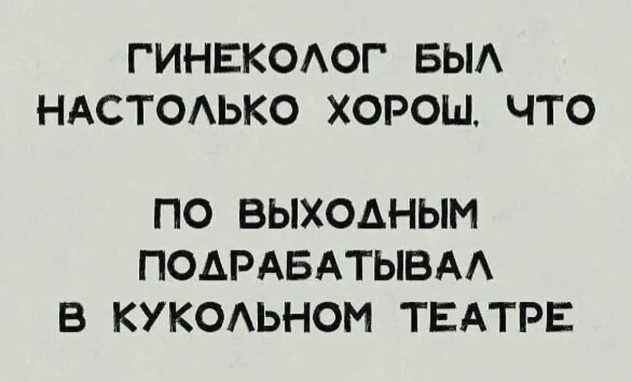 19 февраля 2026, 21:05 Настя ИзмайловаЮмор за день и хороший гинеколог ✕ Размер шрифта: 17px ✕ Ссылка скопирована! Вопреки всем законам генетики, сын сантехника Петрова закончил школу с золотой медалью, институт - с красным дипломом и уехал на стажировку в Англию…Спился уже в Оксфорде. юмор