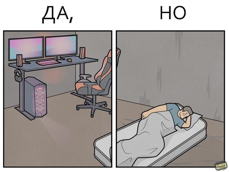 Работы Антона Гудима на первый взгляд кажутся обычными зарисовками о быте: офис, гаджеты, отношения и те мелкие ритуалы, из которых состоит наш день. Но за лаконичной графикой всегда прячется двойное дно. Читатель проходит короткий цикл: сначала узнавание и легкая улыбка, а через секунду - легкое замешательство. Его иллюстрации не объясняют мир, а скорее подсвечивают абсурдность привычных вещей, заставляя вступать в спор с самим собой. Перед вами 17 историй, которые попадают в точку и оставляют после себя легкое послевкусие недоумения.