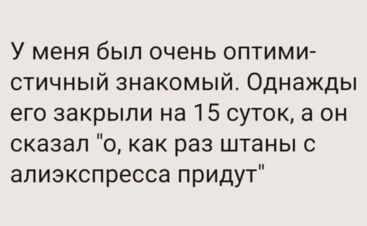 3 марта 2026, 19:05 Настя ИзмайловаЮмор на вечер и одноразовые стаканчики ✕ Размер шрифта: 17px ✕ Ссылка скопирована! - Девушка, дайте мне таблетку.-Вам какую?- Белую.-Послушайте, это аптека. У нас много белых таблеток.- Одну дайте. юмор