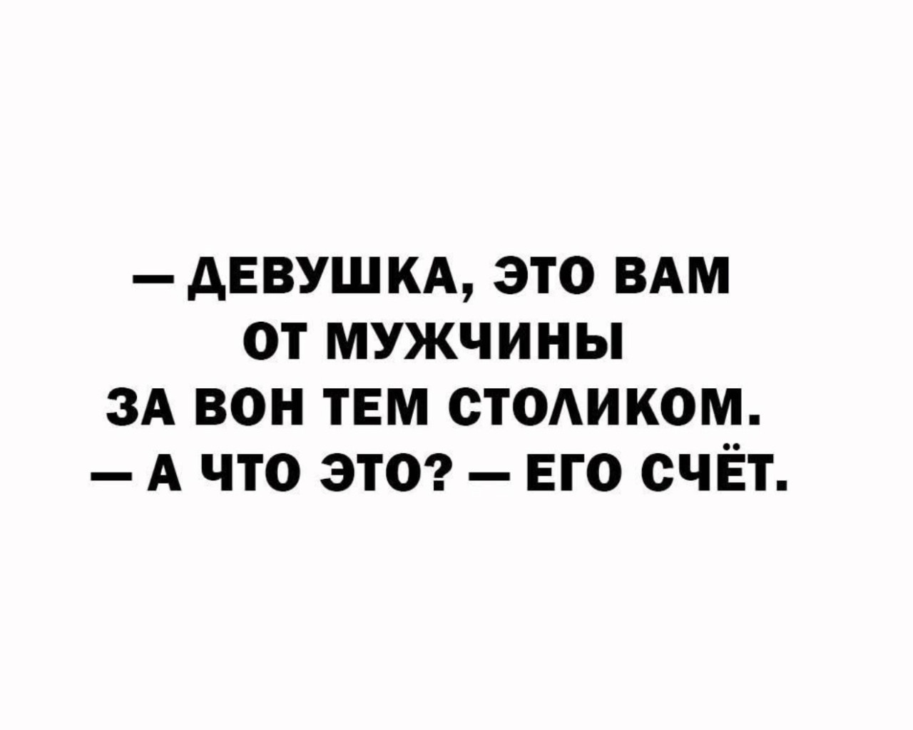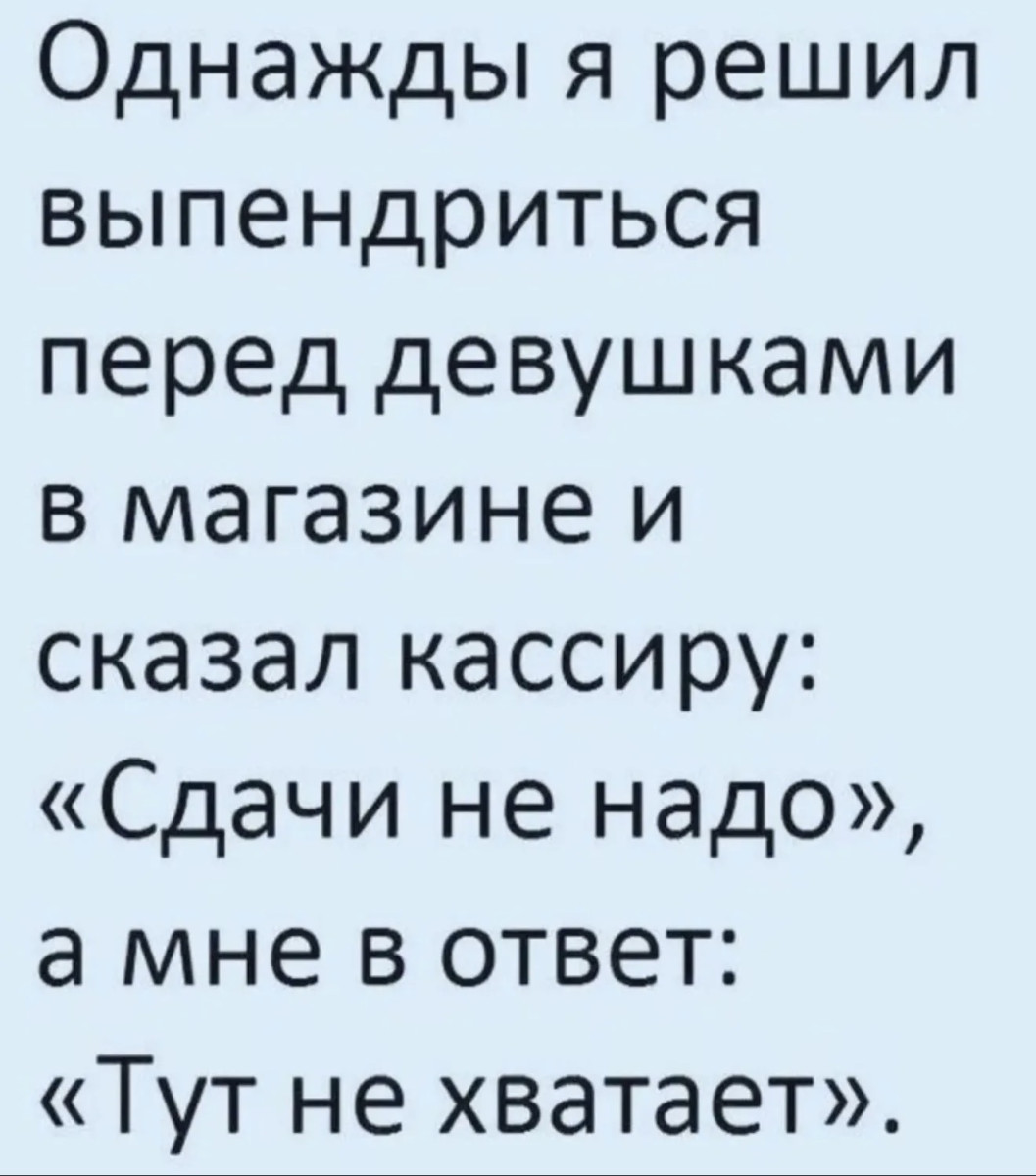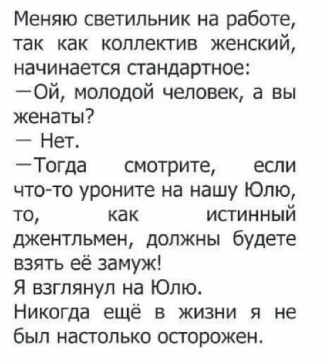 2 апреля 2026, 19:05 Настя ИзмайловаЮмор на вечер и мужчина за столиком ✕ Размер шрифта: 17px ✕ Ссылка скопирована! - Доброе утро, принцесса! Как спалось?- Это её муж. Чё тебе надо?- Доброе утро, муж. Как спалось нашей принцессе? юмор