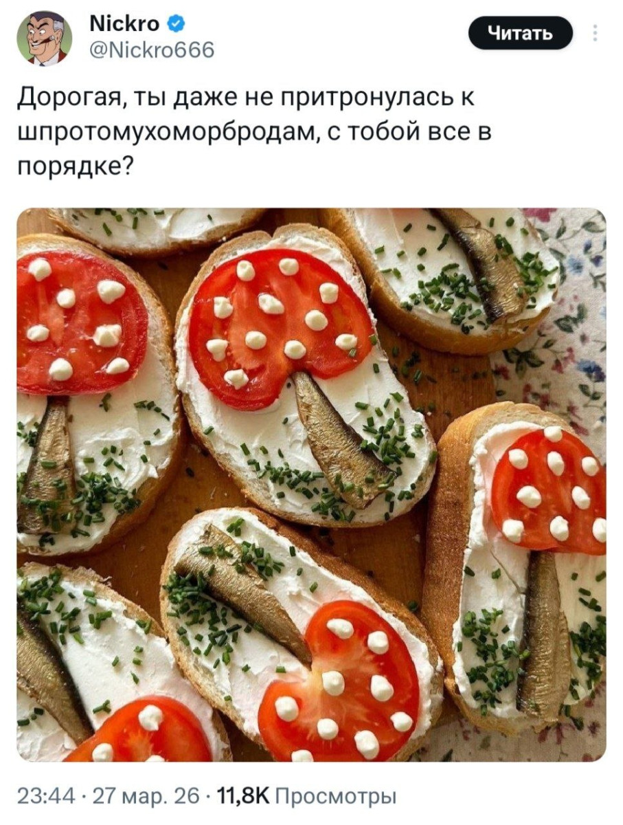 5 апреля 2026, 06:06 Алексей ИвановСмешные картинки на утро 5 апреля и короткие сроки ✕ Размер шрифта: 17px ✕ Ссылка скопирована! Мухоморы со шпротами, как не стать «хорошим, солнечным человечком» и другие интернет мемы в нашей подборке юмора и мемов на воскресение 5 апреля. мемыюмор