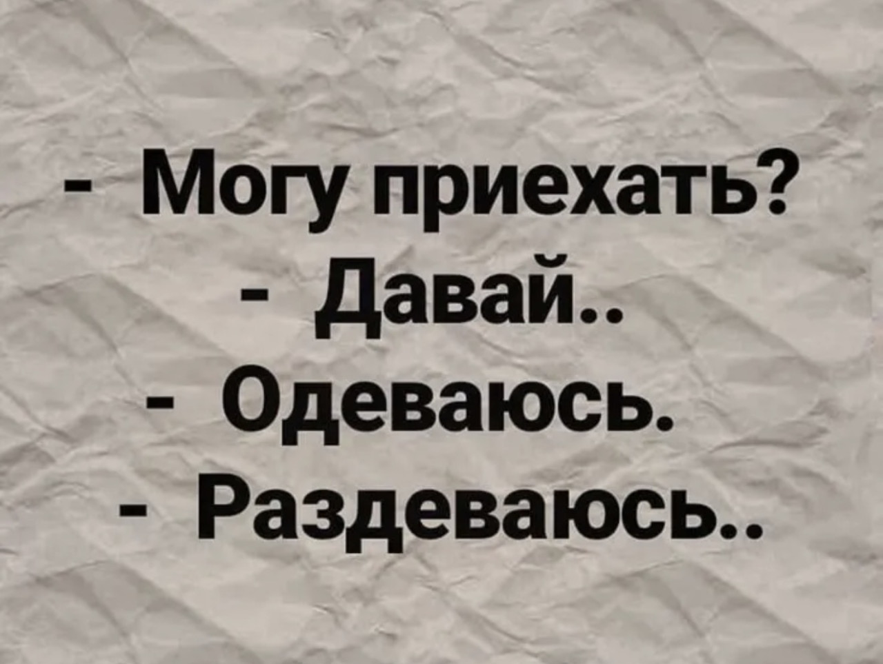 5 апреля 2026, 19:01 Настя ИзмайловаЮмор на вечер 5 апреля и диета ✕ Размер шрифта: 17px ✕ Ссылка скопирована! ИСЧЕЗНУТЬ МОЖЕТ КАЖДЫЙ.ТЫ ПОПРОБУЙ ОСТАНЬСЯ. юмор