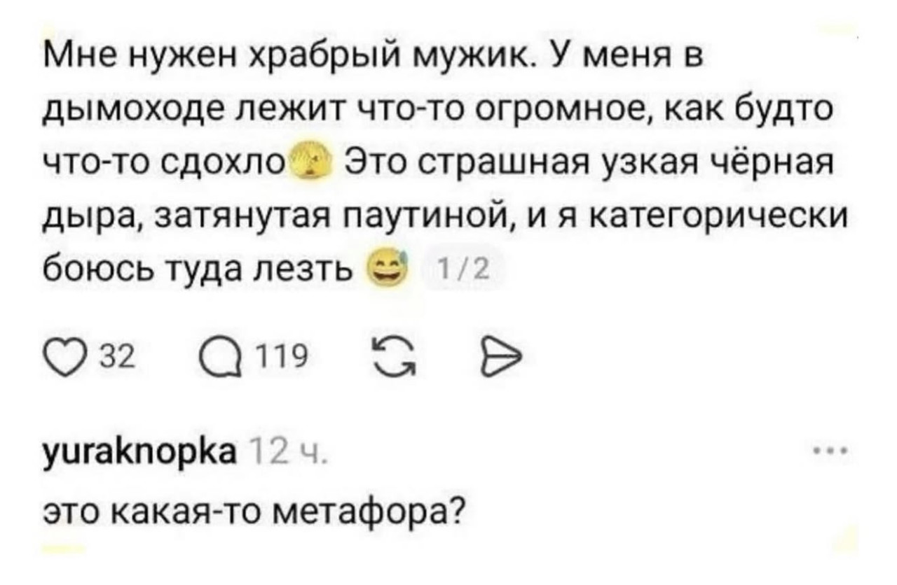 14 апреля 2026, 19:05 Настя ИзмайловаЮмор на вечер 14 апреля и спокойствие ✕ Размер шрифта: 17px ✕ Ссылка скопирована! У меня за плечами огромный жизненный опыт, а когда-то там были крылья. юмор