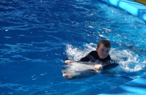 Особенно нравятся Максиму песня про Антошку и песня Чебурашки. На стене висит говорящая азбука для занятий – мальчик нажимает на кнопки и слушает стишки про разные буквы. Чаще всего - букву «Д», потому что на картинке нарисован дельфин. Максим и Таня мечтают снова поехать на курс дельфинотерапии. То, что сын после занятий с дельфинами заговорил, родители считают настоящим чудом.