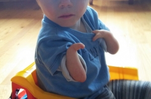 Сейчас Робину 4 года. Он серьезный и терпеливый человечек. Первые шаги он научился делать совсем недавно – за ручку с мамой. А вообще приспособился передвигаться по комнате на цветном игрушечном грузовичке, как на коляске: садится в кузов и ловко перебирает ножками. Первый год он даже не осознавал, что у него есть руки – просто держал их за головой. Сейчас научился ручки сводить, указывать на предметы, дотрагиваться до них.