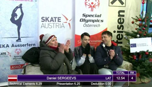 Мы с ребятами долго готовили новые программы с новыми эелементами, обучались и консультировались по новому уровню. И вот мы - в Инсбруке, на чемпионате Австрии по программе SO - эта программа для людей с ментальными проблемами. Диагноз наших трех латвийских участников - аутизм. В своих дивизионах они были самые младшие. Соперники были серьезные. Тем не менее наши ребята выступили блестяще. Бронзовую медаль завоевала Валерия Лебедева. Медалями награждены и мальчики - МАрк Ванагс и Даниэль Сергеев - за 4-е места.